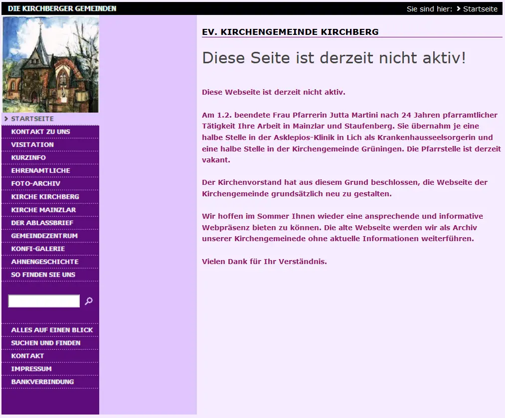 Hier finden Sie die frühere, nun archivierte Hompage von Kirchberg 1:
